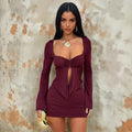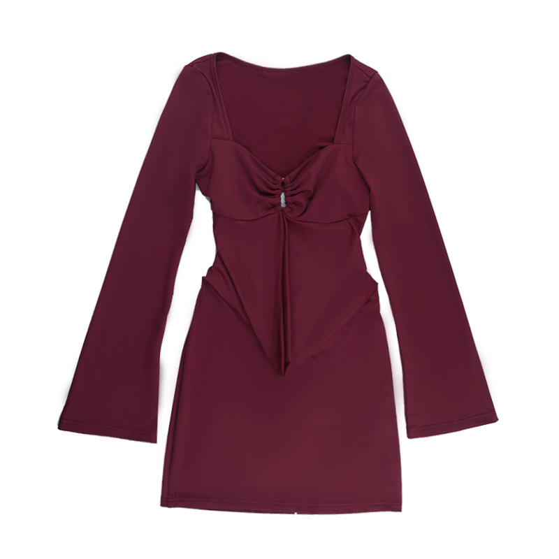 Autumn Winter Pockets Metal Ring Long Sleeve Narrow Dress