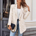 Beige Floral Embroidered Long Sleeve Blazer Jacket for Women - Morena