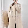 Stay warm in style with this beige wool blend long coat with brown collar for women. Designed for comfort and versatility, this coat combines a timeless silhouette with soft, durable fabric to make it a wardrobe essential.