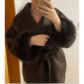 Add a touch of sophistication to your winter wardrobe with this versatile gray coat featuring plush faux fur trim. Designed with a belted waist and a modern silhouette, it offers both warmth and style for everyday wear.