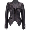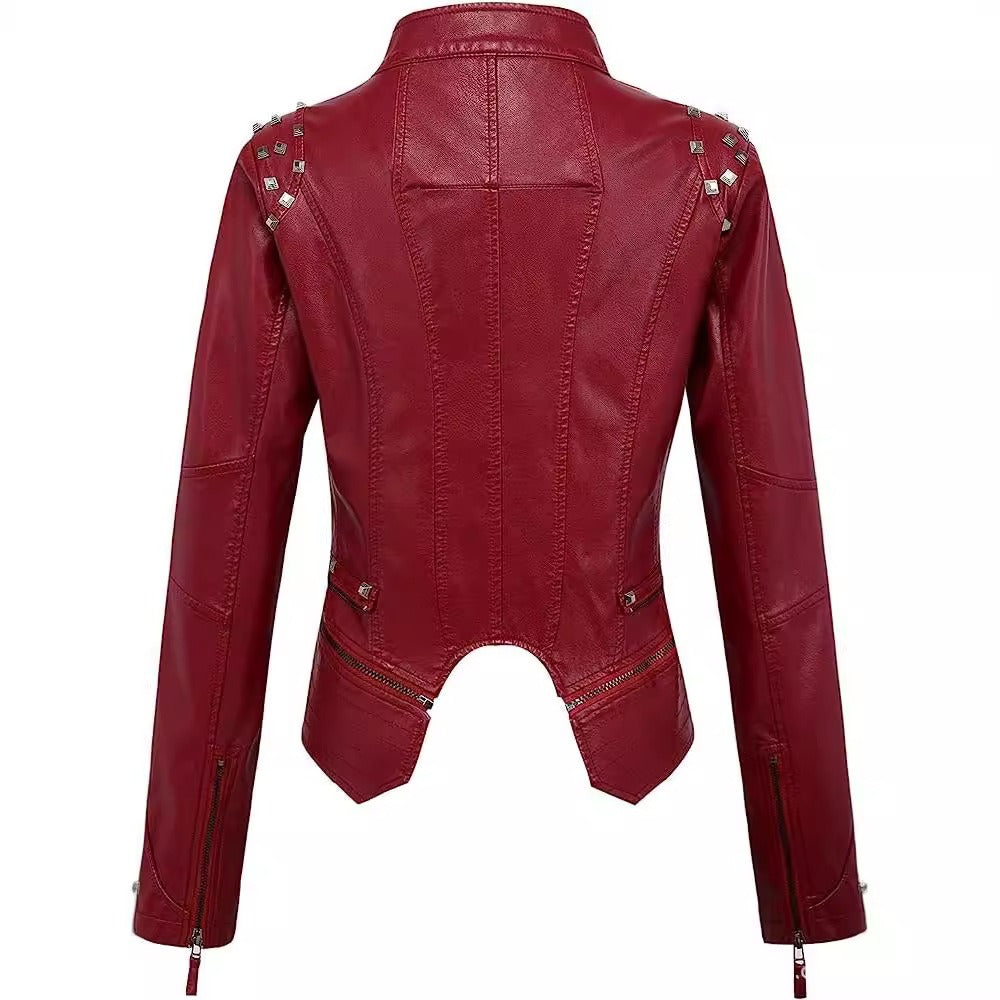 Faux Leather Studded Biker Jacket for Women - Leonia