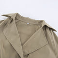 Khaki Cropped Trench Coat with Wide Collar for Women - Romana