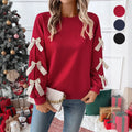 Add a playful touch to your casual wardrobe with this red sweatshirt, featuring charming bow details on the sleeves. This stylish piece combines comfort and a fun design, making it perfect for everyday wear.