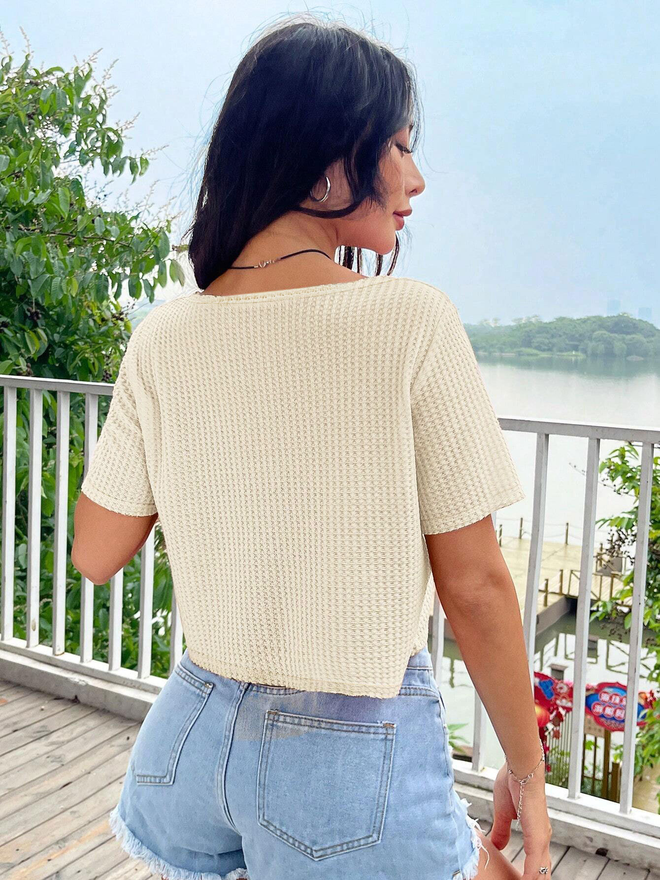 Women Clothing Simple Sexy V neck T shirt Sexy Design Short Cropped Design Blouse